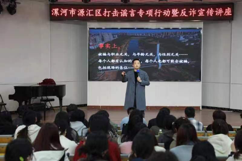 漯河市公安局源匯分局民警耿涵以通俗易懂、喜聞樂(lè)見(jiàn)的方式,普及網(wǎng)絡(luò)謠言危害,使廣大師生對(duì)網(wǎng)絡(luò)謠言的危害和嚴(yán)重性有了更深入的認(rèn)識(shí),進(jìn)一步提高了師生防范和抵制網(wǎng)絡(luò)謠言的意識(shí)和能力。同時(shí)通報(bào)了轄區(qū)高校電信網(wǎng)絡(luò)詐騙案件的發(fā)案情況和涉詐人員情況,呼吁在校學(xué)生作為新時(shí)代有知識(shí)、有理想的學(xué)生,一定要用自己的知識(shí)武裝頭腦,遠(yuǎn)離灰色網(wǎng)絡(luò),切不可成為電信網(wǎng)絡(luò)詐騙的幫兇。