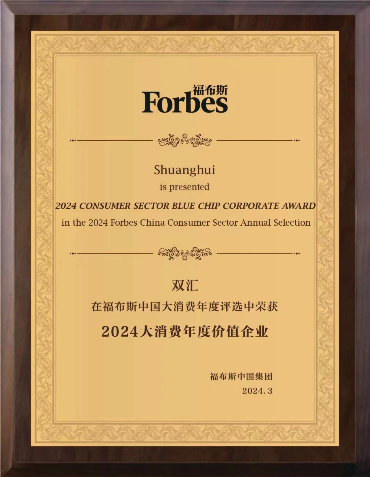 雙匯獲評福布斯“2024大消費年度價值企業(yè)”
