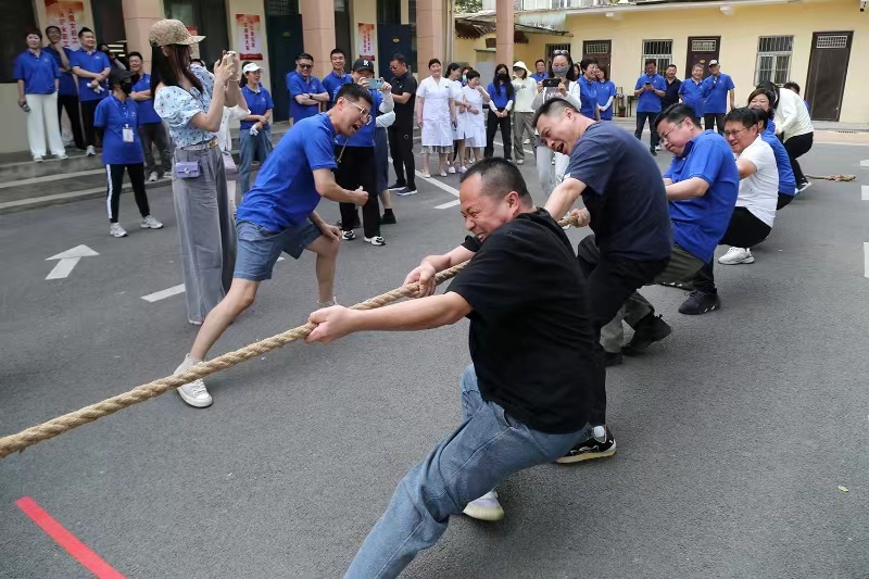 本次趣味運(yùn)動(dòng)會(huì)旨在通過(guò)輕松愉快的體育活動(dòng),增強(qiáng)職工之間團(tuán)隊(duì)協(xié)作能力、減輕工作壓力,促進(jìn)身心健康,享受運(yùn)動(dòng)帶來(lái)的快樂(lè)。運(yùn)動(dòng)會(huì)設(shè)置了雙龍戲珠、成語(yǔ)接龍、拔河比賽等項(xiàng)目。各個(gè)競(jìng)賽項(xiàng)目的設(shè)置,既 有力量的角逐,又有技巧的較量;既有趣味娛樂(lè)氛圍,又有團(tuán)隊(duì)比拼競(jìng)爭(zhēng),參賽者們齊心協(xié)力、奮勇爭(zhēng)先,展現(xiàn)出了蓬勃向上的精神風(fēng)貌。拔河作為運(yùn)動(dòng)會(huì)的傳統(tǒng)項(xiàng)目,隨著裁判的第一聲哨響,將整個(gè)運(yùn)動(dòng)會(huì)氣氛推向了高潮。運(yùn)動(dòng)員們咬緊牙關(guān)、皺緊眉頭,斗志昂揚(yáng),場(chǎng)邊拉拉隊(duì)為各自隊(duì)員加油打氣,掌聲和歡呼聲此起彼伏,現(xiàn)場(chǎng)氣氛熱烈。參賽者們?cè)谶\(yùn)動(dòng)中感受快樂(lè),在快樂(lè)中提升自我,紛紛表示,此次運(yùn)動(dòng)會(huì)不僅是一次身體的鍛煉,更是一次加深同事朋友友誼的機(jī)會(huì),為未來(lái)的工作和生活注入源源不斷的動(dòng)力。