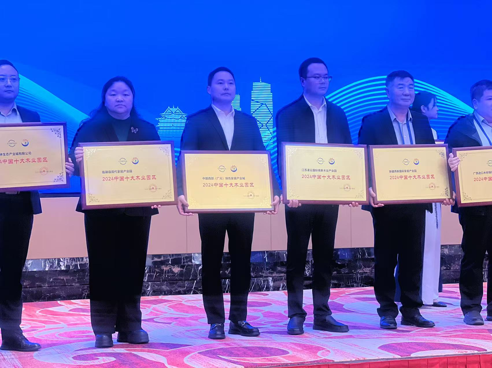 會(huì)議上,臨潁縣現(xiàn)代家居產(chǎn)業(yè)園榮獲“2024中國十大木業(yè)產(chǎn)業(yè)園”榮譽(yù)稱號(hào),王志敏上臺(tái)領(lǐng)獎(jiǎng),并向與會(huì)人員推介我縣木業(yè)產(chǎn)業(yè)優(yōu)勢(shì),誠邀企業(yè)來臨參觀考察。