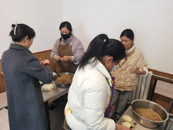 10點(diǎn)半,臺(tái)領(lǐng)導(dǎo)和職工代表來(lái)到職工餐廳組織包餃子活動(dòng)。臺(tái)工會(huì)提前準(zhǔn)備好了20多斤羊肉、豬肉餃子餡,大家分工協(xié)作,有人搟餃子皮,有人包餃子,有人燒水煮餃子,經(jīng)過一個(gè)多小時(shí)的準(zhǔn)備,一盆盆熱氣騰騰的餃子端上餐桌,大家在其樂融融的氛圍中,度過了一個(gè)意義非凡的冬至節(jié)。