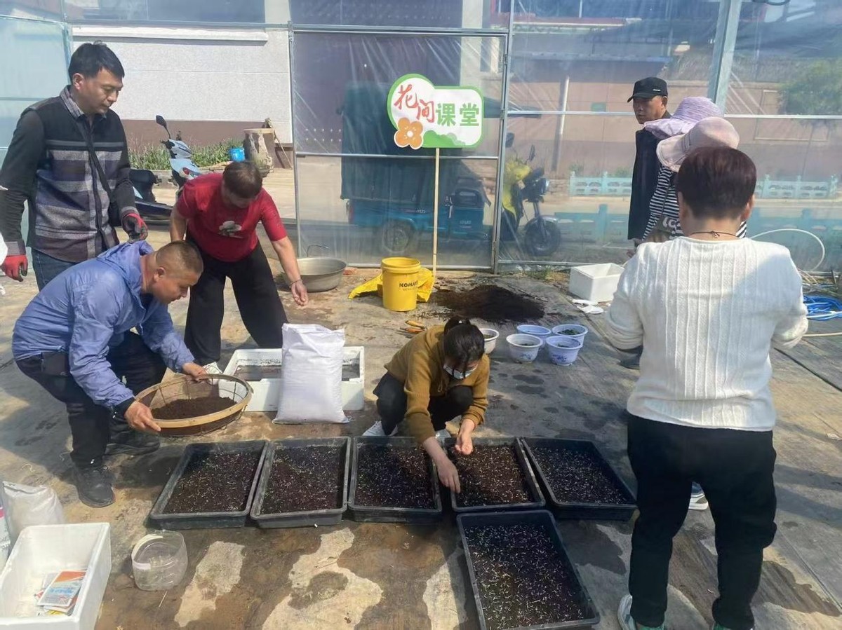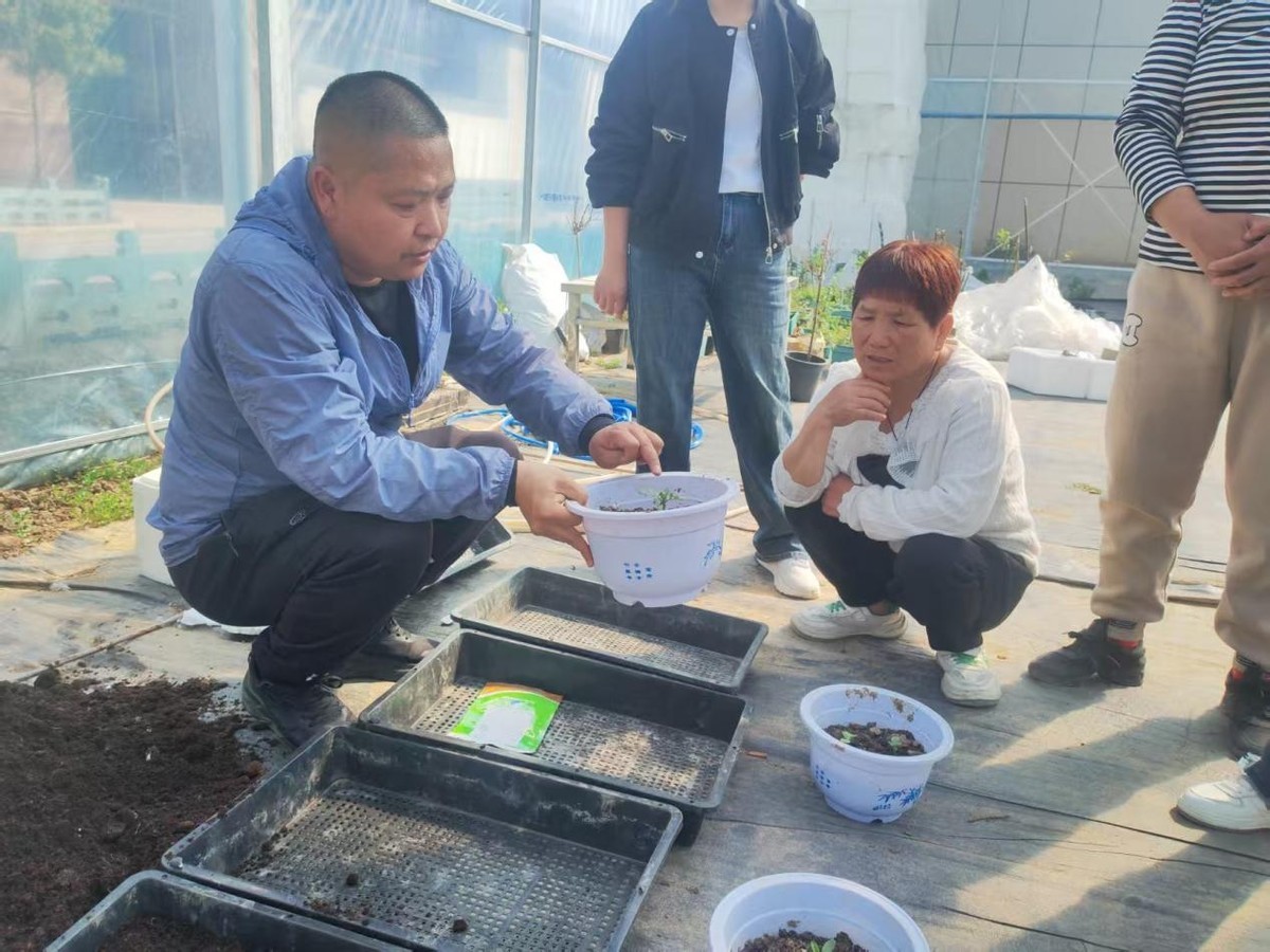 依靠著園林中心專家團隊技術優(yōu)勢,趙基元搭建起了立體化技術支撐網絡:在種植端,邀請園林專家開展“理論+實操”雙模教學,將基質配比、控溫催芽等12項核心技術分解為可視化操作流程;在管護端,建立“云上花匠”跟蹤指導平臺,通過新媒體實時解決水肥管理、病蟲害防治等難題;在品控端,制定《優(yōu)質種苗培育標準》,將苗株優(yōu)質率從60%提升至85%。村民潘大姐展示著學習筆記:“現在既會修剪月季接穗,又能掌握草花輪作節(jié)奏,相當于考取了‘雙科證書’”。
