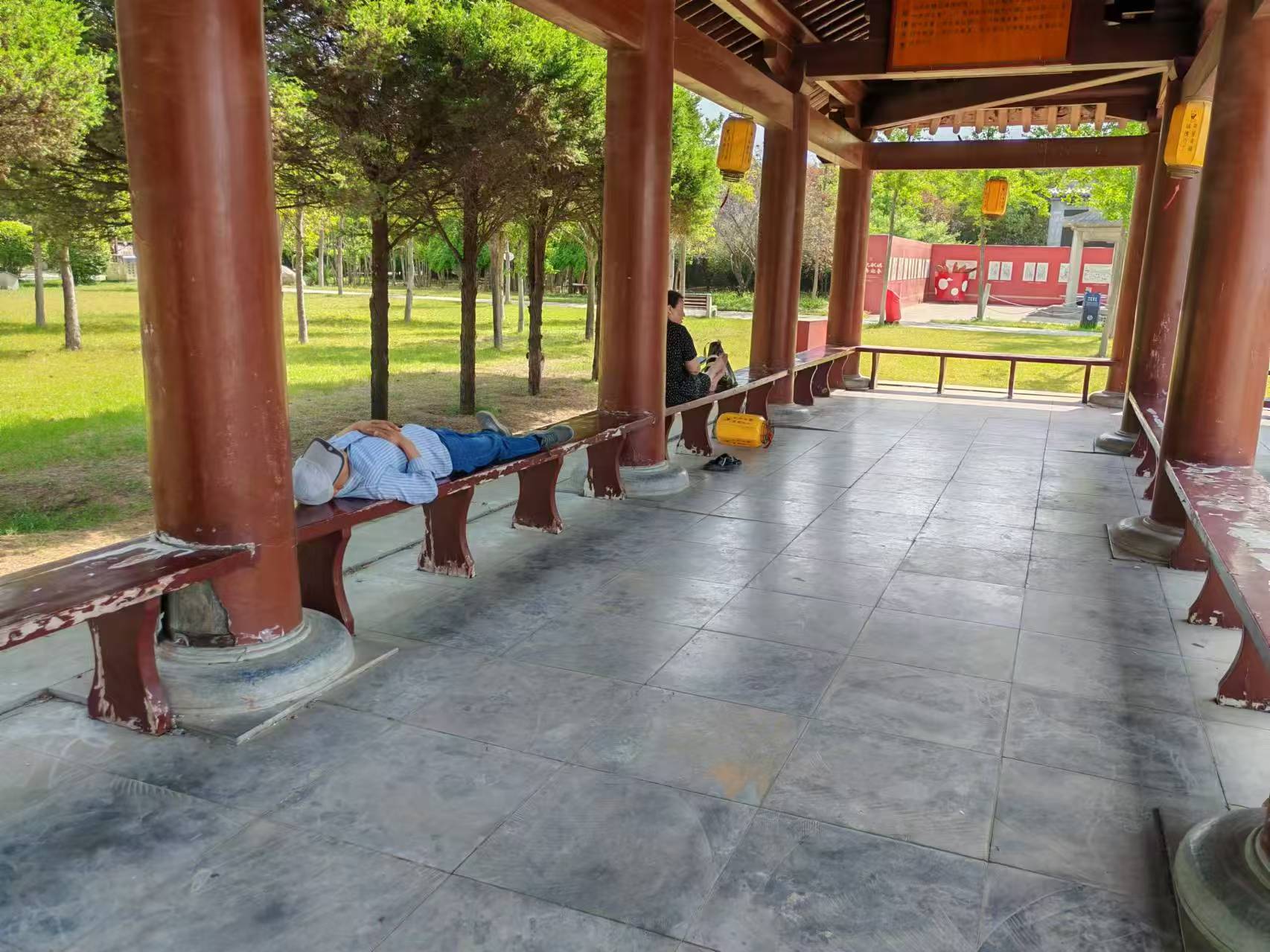 五一期間,許慎文化園,仍發(fā)生了游客躺在長椅上休息的行為。
