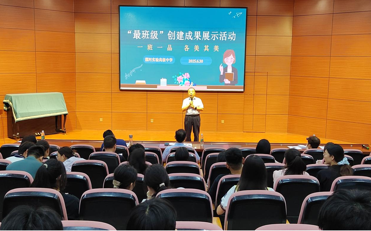 為深入踐行“三全育人”理念,全面展示“最班級”創(chuàng)建成效,構(gòu)建特色鮮明的班級文化生態(tài),漯河實驗高級中學(xué)于2025年6月29日至30日在學(xué)校報告廳成功舉辦2024-2025學(xué)年下學(xué)期“最班級”創(chuàng)建成果展示活動。高一、高二年級全體班級參與了此次展示,學(xué)校領(lǐng)導(dǎo)及中層干部組成評委團(tuán),政教處主任白金全主持活動。