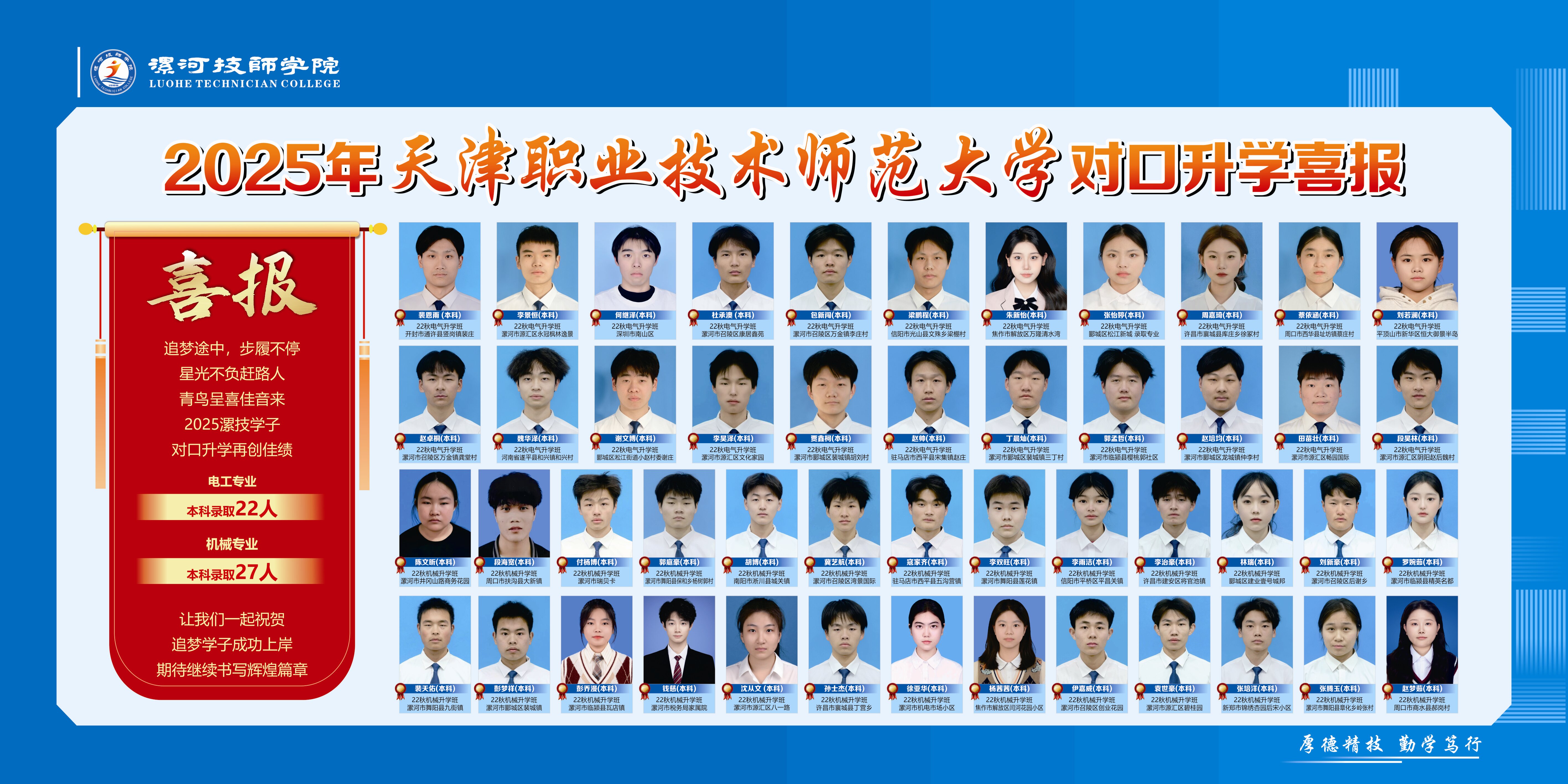 設(shè)有電氣自動化設(shè)備安裝與維修、機械設(shè)備維修、計算機應(yīng)用與維修、護理4個專業(yè)。升學(xué)方向以對口單招天津職業(yè)技術(shù)師范大學(xué)本科單招為主陣地,兼顧河南省對口升學(xué)考試。近三年來,天職師大本科升學(xué)率每年65%-75%。2025年,護理專業(yè)在河南省對口升學(xué)錄取率高達93%。