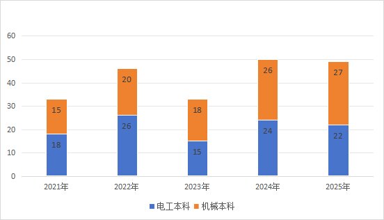 近五年漯河技師學(xué)院升學(xué)部電工專業(yè)、機械專業(yè)學(xué)子被天職師大對口升學(xué)本科錄取人數(shù)