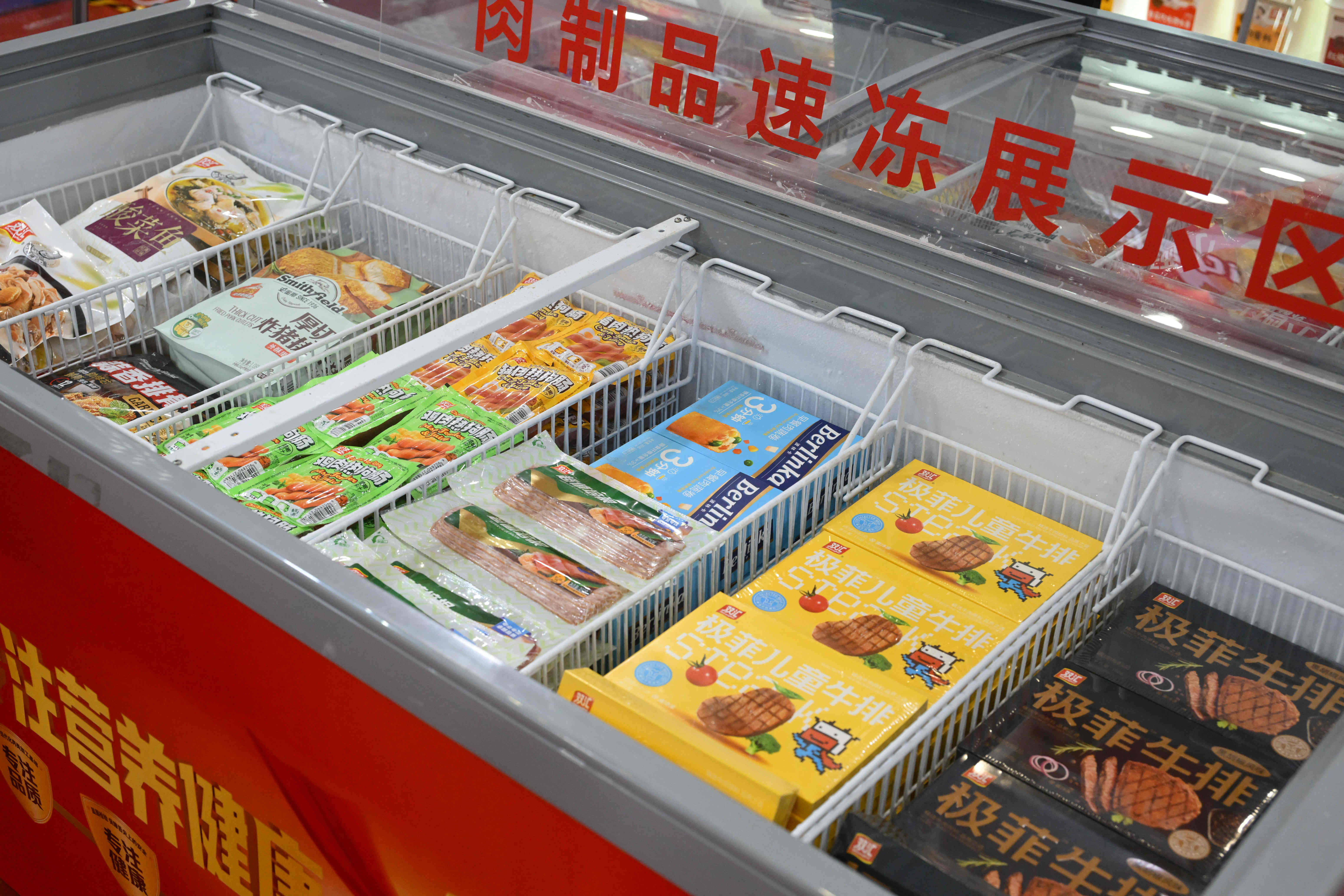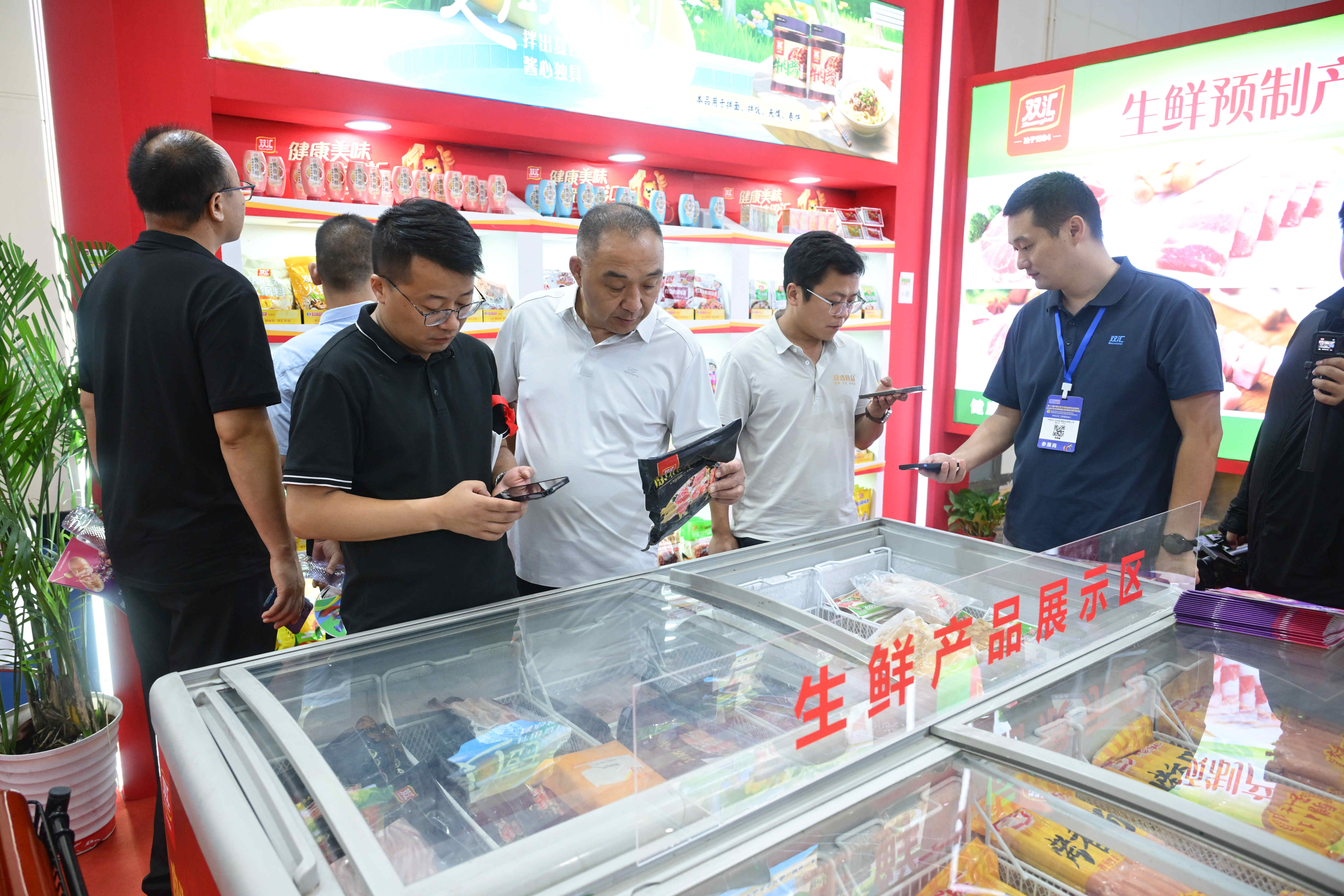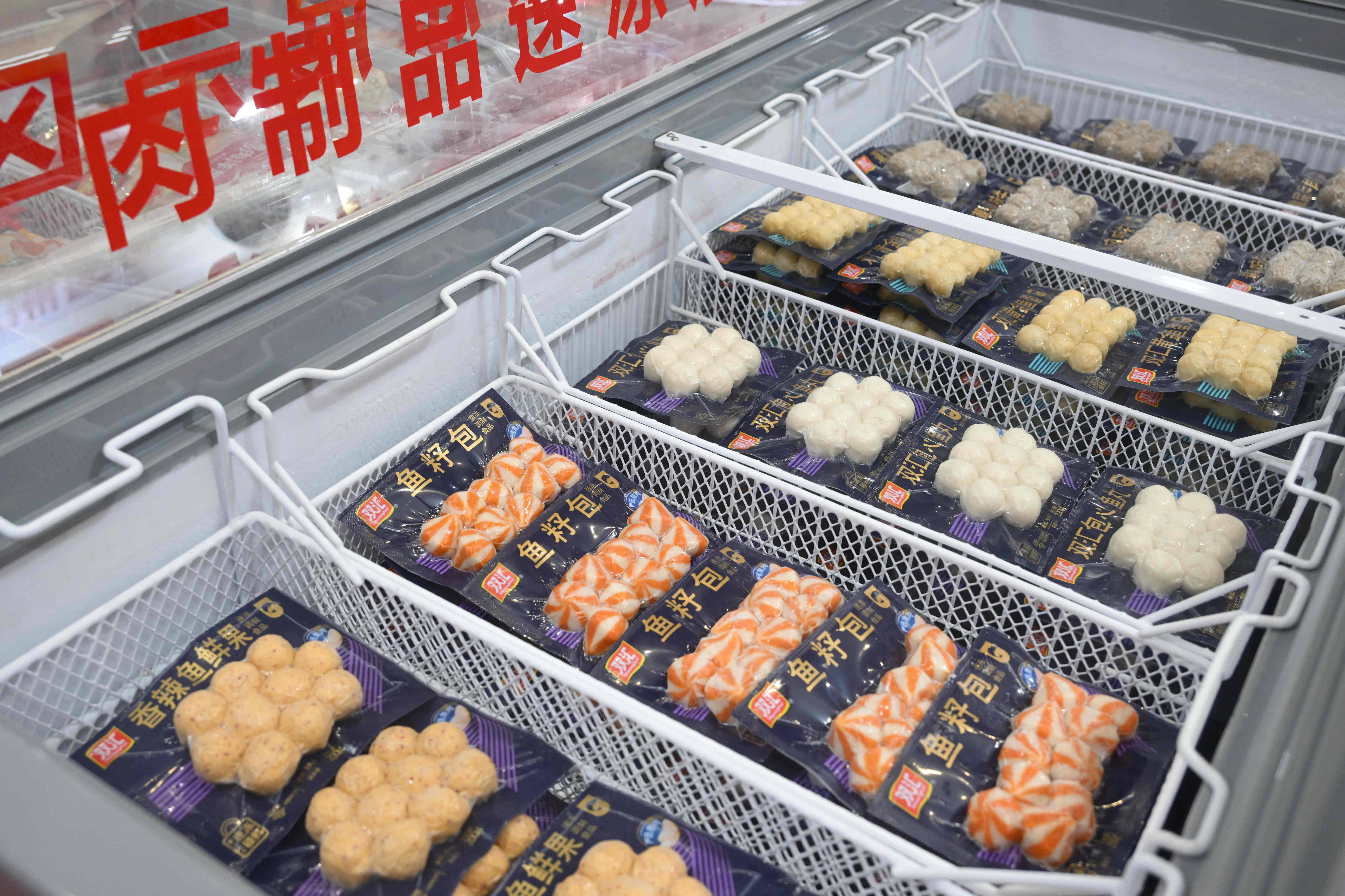 展柜內(nèi),Berlinka早餐肉蔬卷、極菲牛排、超值培根、炸豬排、亞麻籽雞肉餅、熱狗腸等特色產(chǎn)品,蒜香排骨、醬香肥腸、酸菜魚、豬肚雞等菜肴系列,香煎雞排、香酥雞塊、奧爾良風味雞翅中、雞肉洋蔥圈等調(diào)理雞產(chǎn)品,丸子、肉卷、小酥肉、親親腸、芝士脆皮腸等火鍋食材,也充分展現(xiàn)了雙匯在產(chǎn)品創(chuàng)新方面的全新探索。