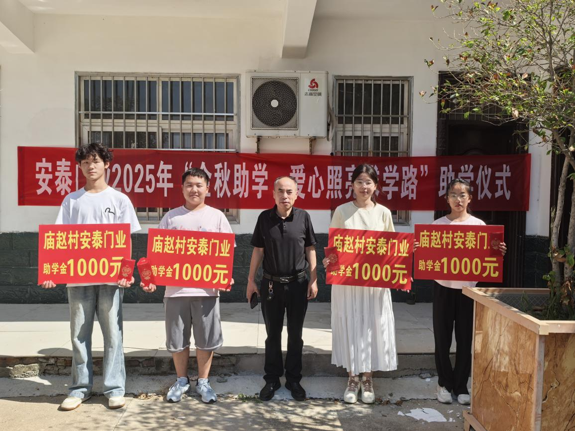 2025年8月22日上午,龍城鎮(zhèn)廟趙村洋溢著溫暖與希望的氛圍,愛(ài)心企業(yè)安泰門(mén)業(yè)2025年“金秋助學(xué)·愛(ài)心照亮求學(xué)路”助學(xué)儀式在這里隆重舉行,為村內(nèi)4名即將踏入大學(xué)校門(mén)的優(yōu)秀學(xué)子送去每人1000元助學(xué)金,以實(shí)際行動(dòng)履行企業(yè)社會(huì)責(zé)任,鼓勵(lì)村里的優(yōu)秀學(xué)子努力奮進(jìn),幫助他們更好地開(kāi)啟大學(xué)生活。