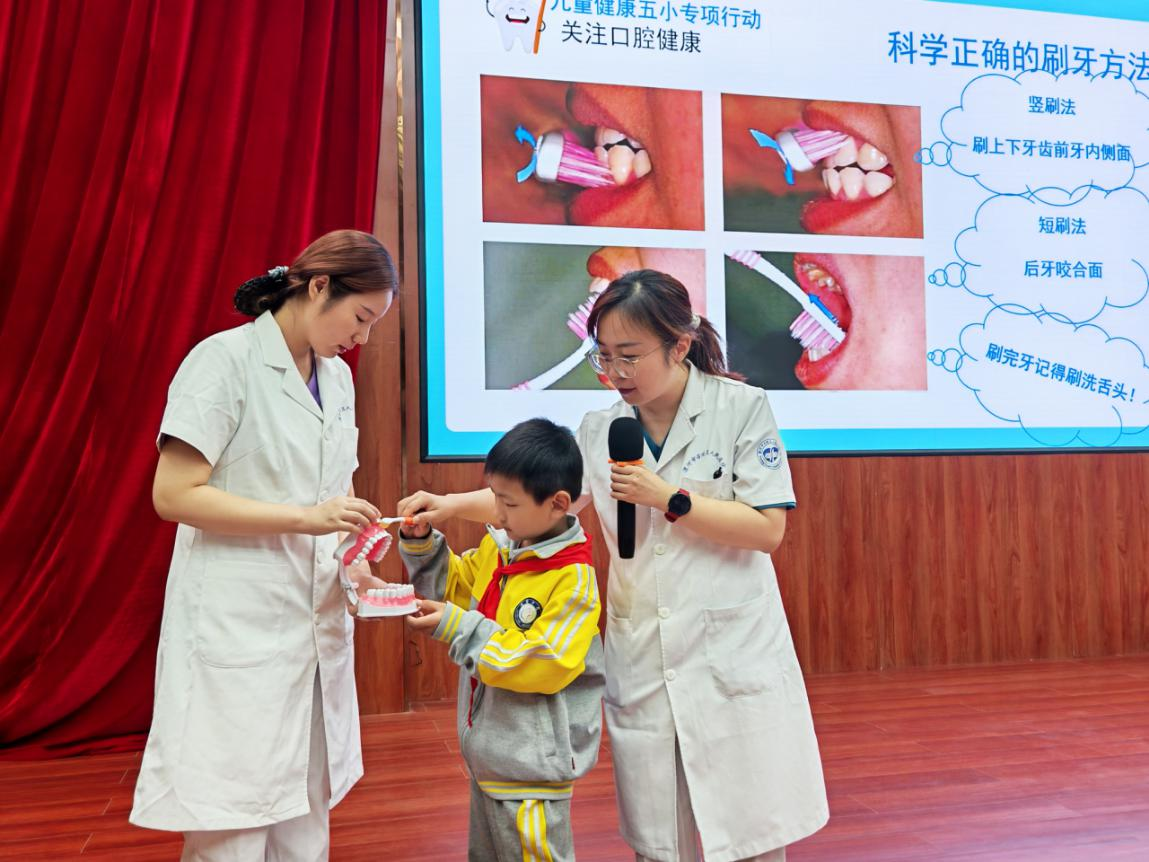 活動中,召陵區(qū)人民醫(yī)院兒童保健科楊柳醫(yī)生為孩子們帶來了一節(jié)生動有趣的健康知識課。課堂上,同學(xué)們在楊醫(yī)生的引導(dǎo)下積極互動,尤其是在刷牙規(guī)范講解環(huán)節(jié),少先隊(duì)員們踴躍參與實(shí)操演示,在趣味學(xué)習(xí)中樹立健康意識。這堂課程不僅傳遞了健康知識,更將黨對少年兒童的關(guān)懷具象為可感可知的教育服務(wù),讓紅色初心在健康育人中落地生根。