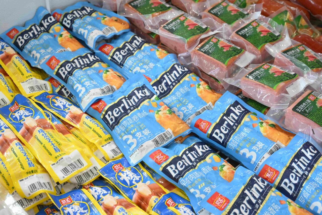 雙匯展廳內(nèi)的展品琳瑯滿目、品類豐富,我們可以看到企業(yè)對肉類美食的探索,早已從“一支火腿腸”拓展出更多可能。僅肉制品就涵蓋了簡頌午餐肉、金沙蛋黃腸、豬腱子肉火腿、富樂鹵味腸等特色產(chǎn)品系列,焦香蜜汁腸、塞納諾火腿、山核桃木煙熏原切培根、薩納齊瓊香腸等史蜜斯系列,玉米肉棗腸、脆骨肉條香腸、火爆小郡肝等匯小鋪零食系列,鹵福齋中式產(chǎn)品禮盒系列,招牌面、香菇雞丁米線、酸辣粉等方便速食系列。