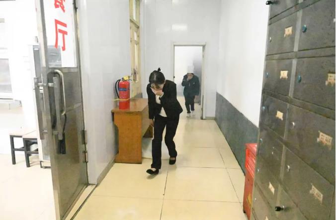 演練模擬了餐廳操作間爐灶周邊易燃物遇明火引發(fā)火災(zāi)的真實場景。隨著演練總指揮、漯河分行黨委書記、行長邢會鋒一聲令下,演練正式開始。現(xiàn)場工作人員第一時間響應(yīng),按照預(yù)案分工迅速行動:果斷關(guān)閉燃?xì)饪傞y門、切斷電源、使用滅火毯覆蓋初期火源、組織人員撤離并開窗通風(fēng)?,F(xiàn)場主管楊云超立即向分行安全保衛(wèi)部門負(fù)責(zé)人陳鵬成報告險情。