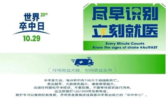 結(jié)合我國實際情況,中國卒中學會發(fā)布了2025年世界卒中日中文主題:“盡早識別,立刻就醫(yī)”,并同步推出主題宣傳海報。