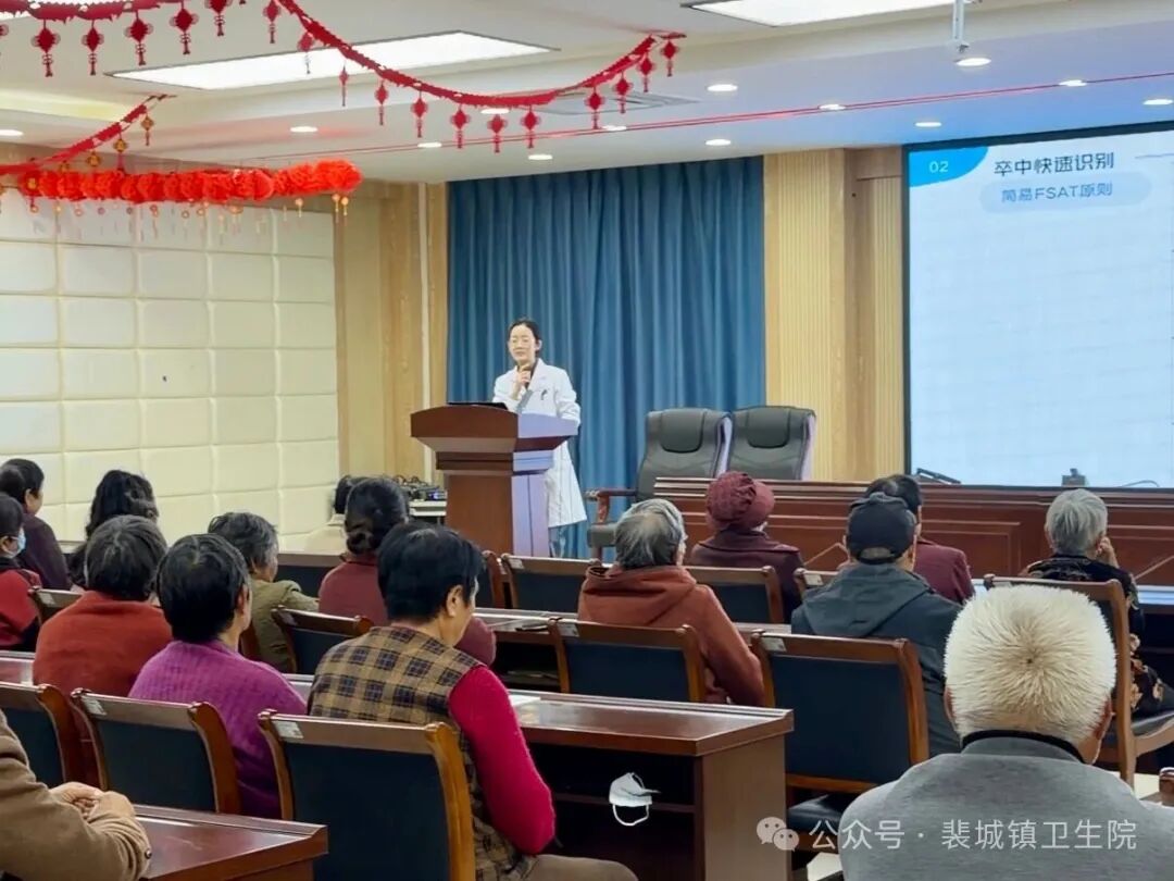 為了提高轄區(qū)內(nèi)老年人對腦卒中的認識和預防能力,增強健康管理意識與自我防護能力。2025年10月16日下午,裴城鎮(zhèn)衛(wèi)生院組織科普宣講團開展世界卒中日健康教育知識講座活動。