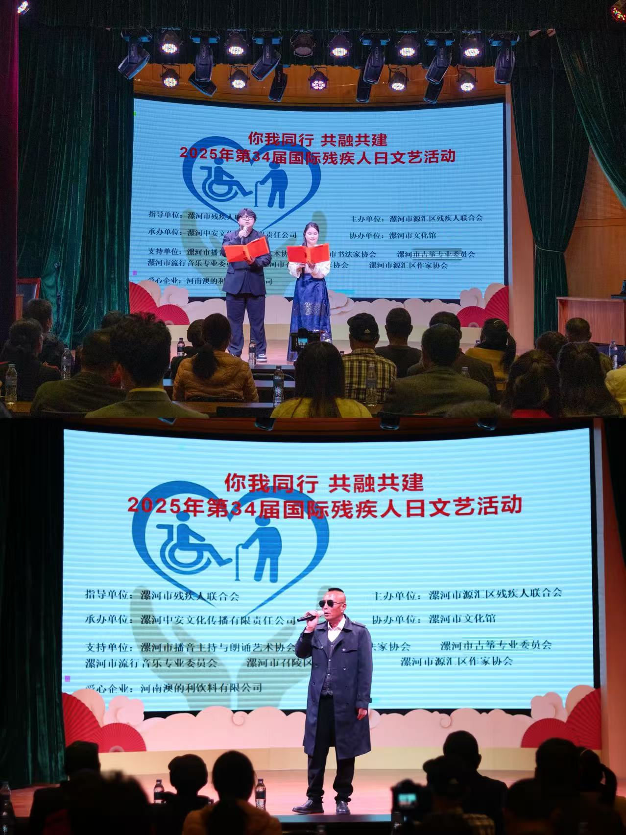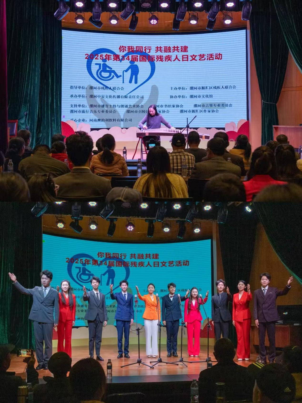 活動現(xiàn)場,文藝展演精彩紛呈、暖意融融。廿一弦古箏社李巖帶來古箏演奏《這世界這么多人》,清泉般的旋律撥動人心;漯河小學(xué)學(xué)生代表劉若涵演唱《心同此愿》,用純凈歌聲傳遞共通的情感與希望;盲人樂團崔秋紅、周運動分別獻上戲曲《府門外三聲炮》與歌曲《愛的世界只有你》,展現(xiàn)出殘疾人朋友對藝術(shù)的執(zhí)著與生命的熱忱。朗誦節(jié)目同樣感染力十足,《詩意中國》《這盛世如您所愿》《相信未來》等作品,在漯河市播音主持與朗誦藝術(shù)協(xié)會成員的演繹下,既抒發(fā)了家國情懷,也傳遞了對美好生活的向往,漯河市流行音樂專業(yè)委員會代表鄭世杰演唱的《揮揮手》,更以灑脫旋律詮釋了直面人生的勇氣。