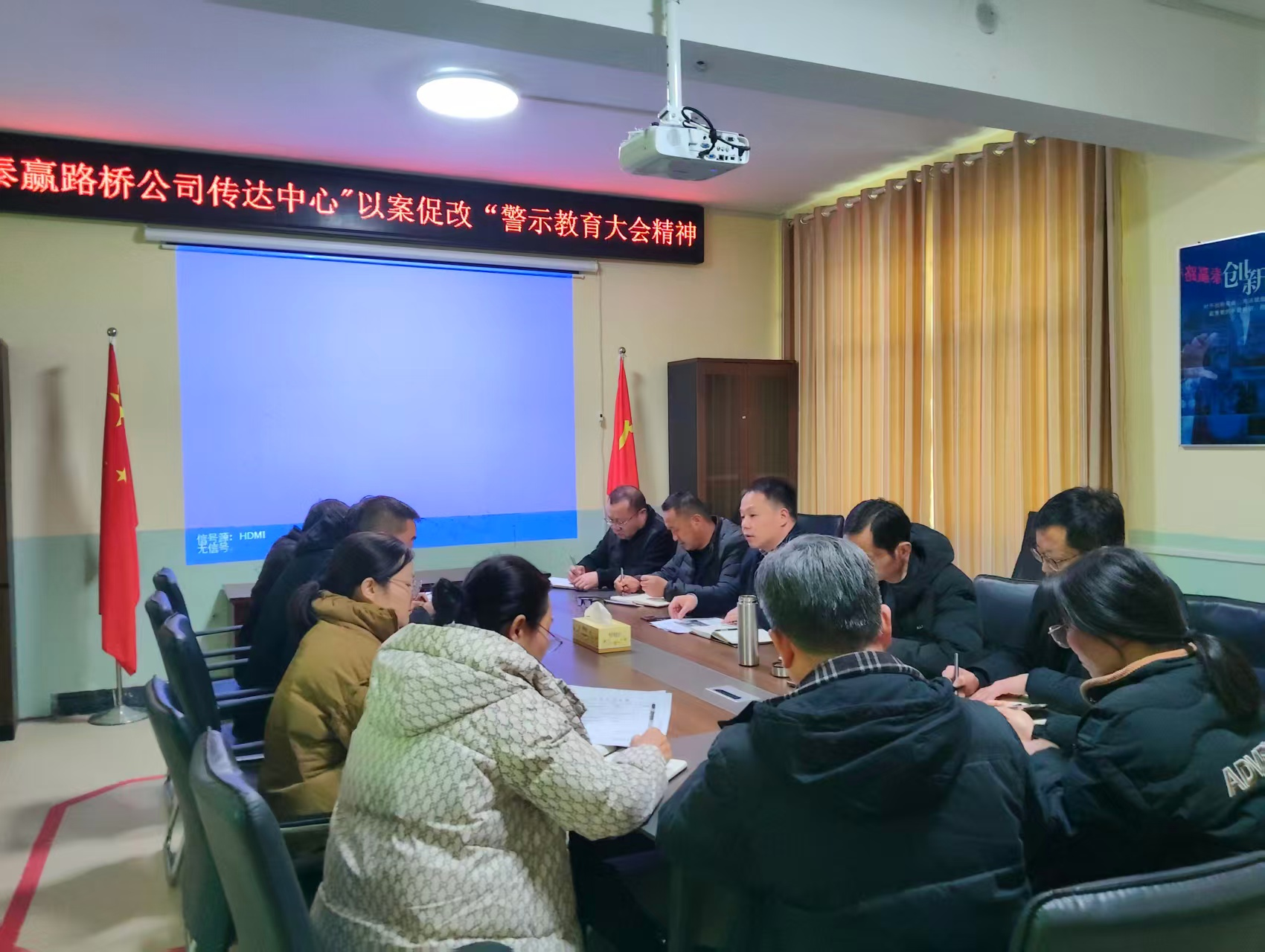 為深入貫徹全面從嚴(yán)治黨要求,強(qiáng)化干部職工紀(jì)律意識(shí)與拒腐防變能力,12月29日,泰贏路橋公司組織領(lǐng)導(dǎo)班子、各部門負(fù)責(zé)人及關(guān)鍵崗位人員召開專題會(huì)議,傳達(dá)學(xué)習(xí)上級(jí)“以案促改”警示教育大會(huì)精神。