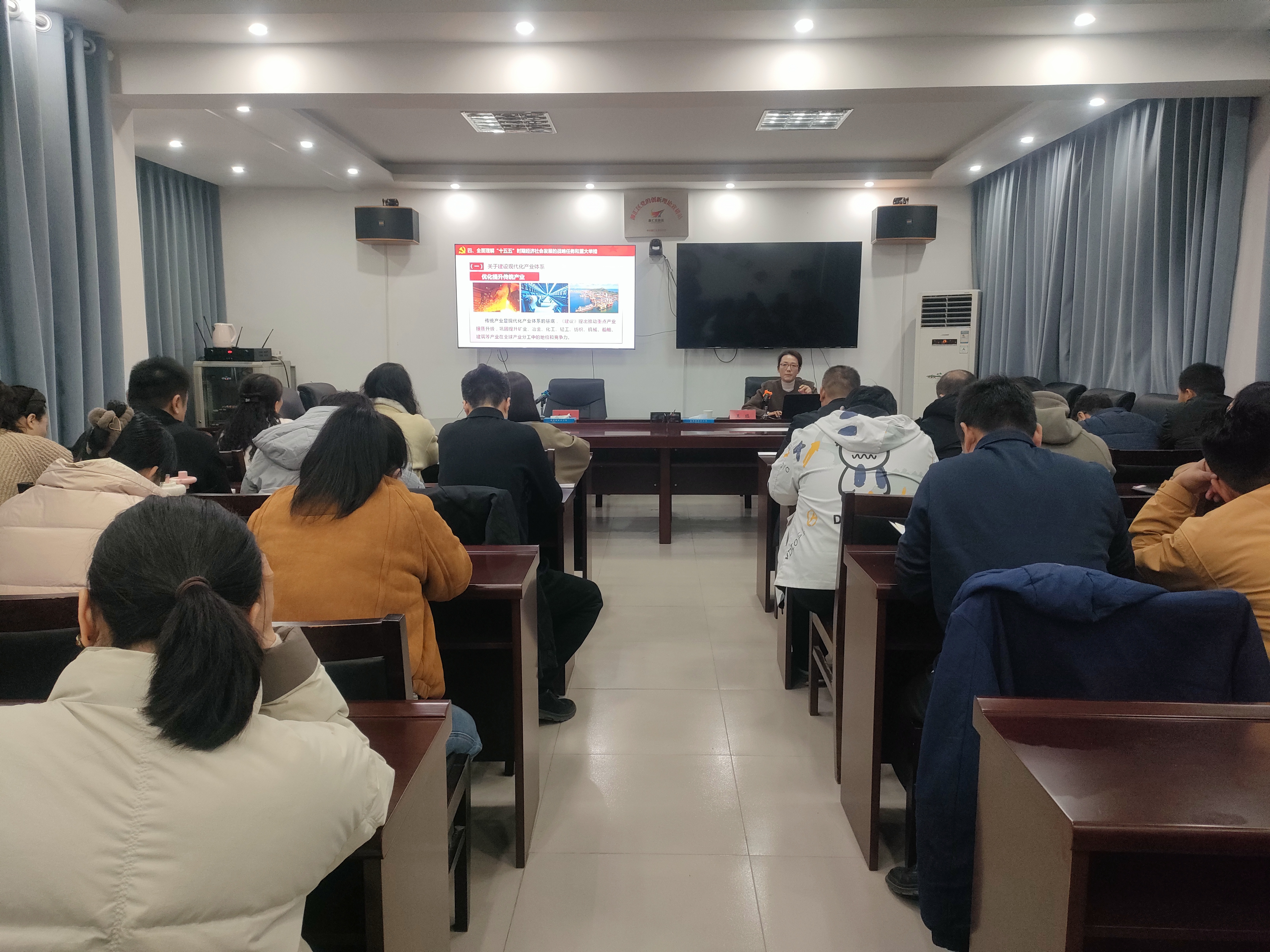 宣講會(huì)立足全會(huì)精神核心要義,圍繞 “黨的二十屆四中全會(huì)召開(kāi)的基本情況”“‘十五五’時(shí)期在基本實(shí)現(xiàn)社會(huì)主義現(xiàn)代化進(jìn)程中的重要地位”“‘十五五’時(shí)期經(jīng)濟(jì)社會(huì)發(fā)展的指導(dǎo)方針和主要目標(biāo)”“‘十五五’時(shí)期經(jīng)濟(jì)社會(huì)發(fā)展的戰(zhàn)略任務(wù)和重大舉措”“堅(jiān)持和加強(qiáng)黨的全面領(lǐng)導(dǎo),凝聚起推進(jìn)中國(guó)式現(xiàn)代化的磅礴力量” 等方面,對(duì)全會(huì)精神進(jìn)行了全面、深入、系統(tǒng)的宣講和闡釋。宣講既有理論高度的精準(zhǔn)闡釋?zhuān)钟袑?shí)踐維度的深度解讀,為干部職工深化思想認(rèn)知、找準(zhǔn)工作抓手提供了有力指導(dǎo)。
