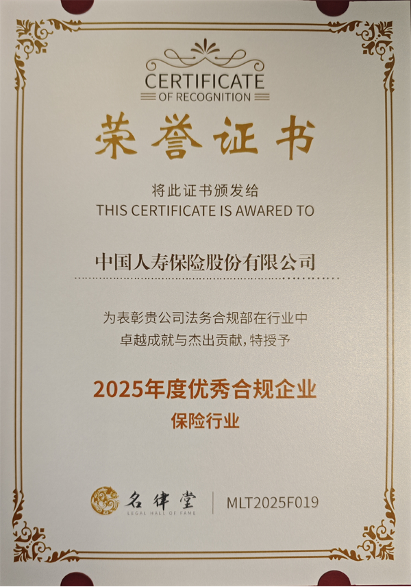 近日,在國內(nèi)法律行業(yè)交流平臺名律堂組織的“2025年企業(yè)合規(guī)先鋒榜”評選項(xiàng)目中,中國人壽保險(xiǎn)股份有限公司(以下簡稱“中國人壽”,股票代碼:601628.SH,2628.HK)榮膺保險(xiǎn)行業(yè)“2025年度優(yōu)秀合規(guī)企業(yè)”。