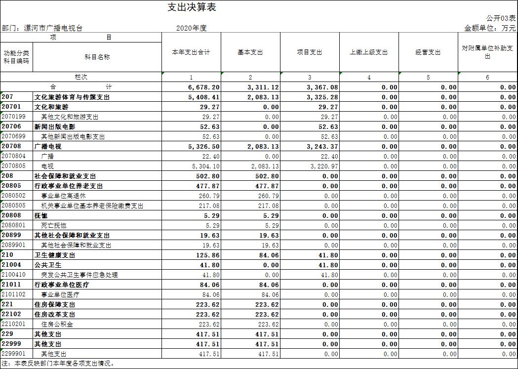 2020年度支出合計6678.20萬元,其中:基本支出3311.12萬元,占49.58%;項目支出3367.08萬元,占50.42%。