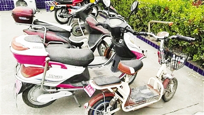 四輛被盜的電動車。 本報(bào)記者 王 輝 攝