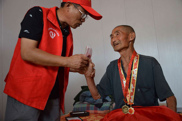 漯河市“愛心爸媽”公益團一行20人,驅車120余公里,帶著全團三百五十八位成員的濃濃愛心,帶著對老英雄們深深的敬仰,帶著慰問品和慰問金,先后慰問了陽縣舞泉鎮(zhèn)的張保安(90歲)、馬志祥(87歲),九街鎮(zhèn)藏灣村的藏彥邦(88歲)和牛趙村的趙中范(89歲)等四位抗美援朝老英雄。同時,看望了兩代軍人之家藏軍輝家庭。