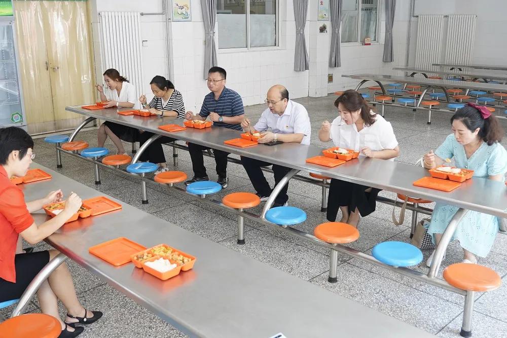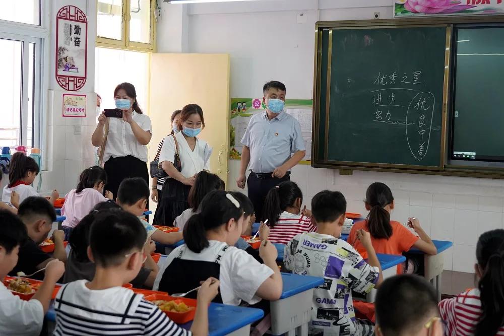 校領(lǐng)導(dǎo)班子和家委會代表現(xiàn)場察看午餐發(fā)放過程,詢問各班老師學(xué)生用餐情況,并走進(jìn)教室,了解孩子實(shí)際用餐情況、用餐秩序和和孩子們的真實(shí)感受。