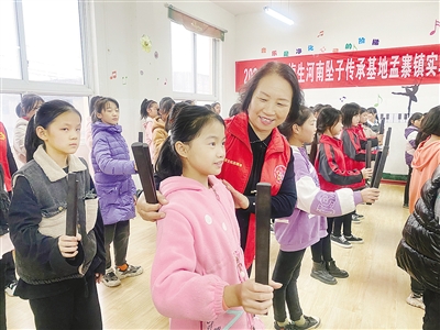 康莊文化合作社的志愿者在舞陽縣孟寨實(shí)驗(yàn)學(xué)校開展河南墜子教學(xué)