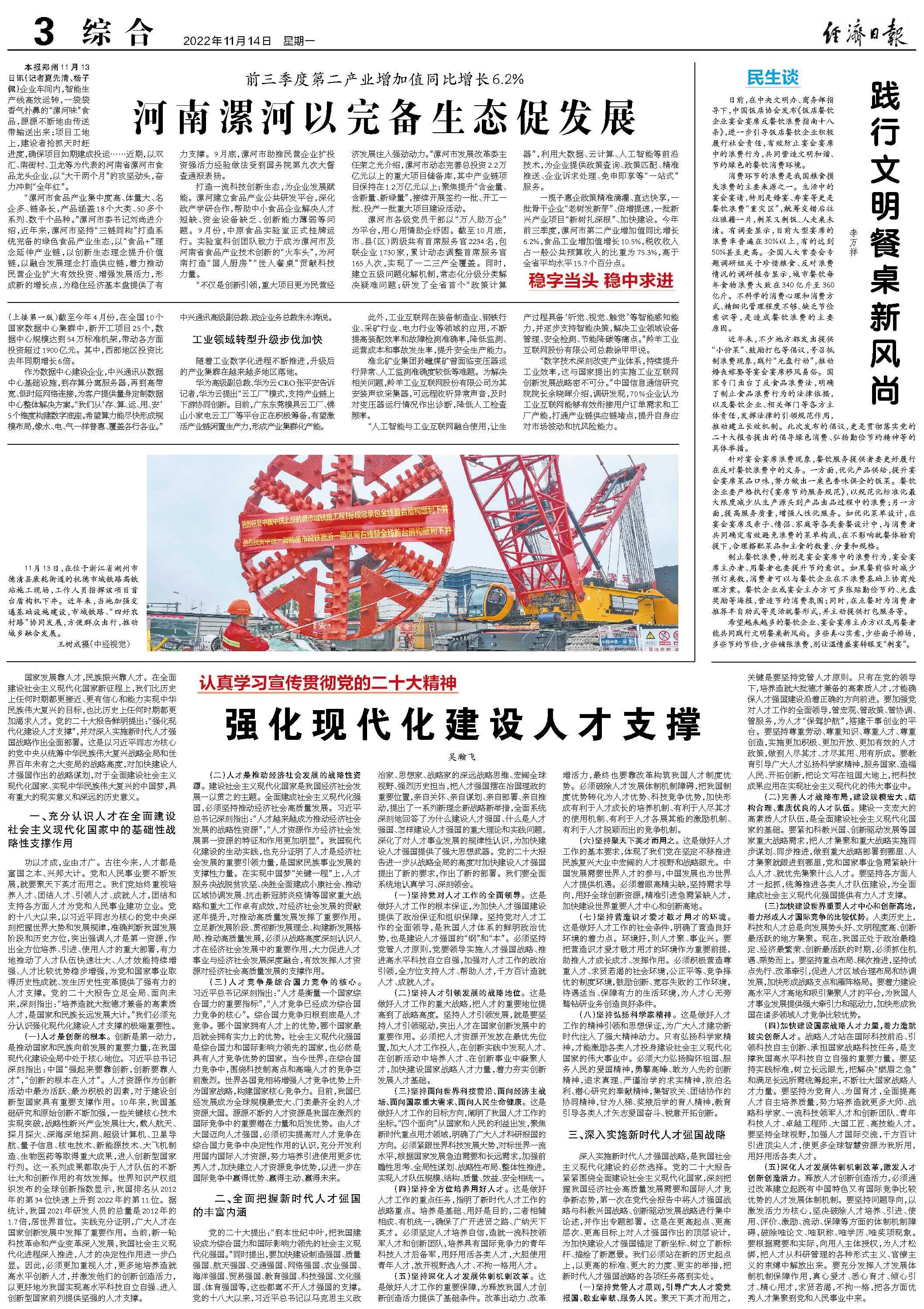 打造一流科技創(chuàng)新生態(tài),為企業(yè)發(fā)展賦能。漯河建立食品產(chǎn)業(yè)公共研發(fā)平臺(tái),深化政產(chǎn)學(xué)研合作,幫助中小食品企業(yè)解決人才短缺、資金設(shè)備缺乏、創(chuàng)新能力薄弱等問題。9月份,中原食品實(shí)驗(yàn)室正式掛牌運(yùn)行。實(shí)驗(yàn)室科創(chuàng)團(tuán)隊(duì)致力于成為漯河市及河南省食品產(chǎn)業(yè)技術(shù)創(chuàng)新的“火車頭”,為河南打造“國(guó)人廚房”“世人餐桌”貢獻(xiàn)科技力量。