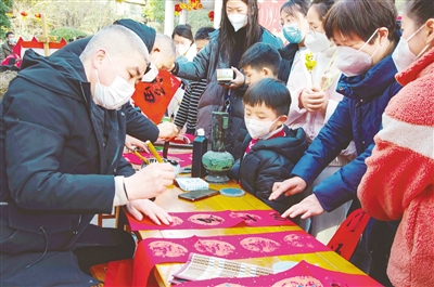 廣場一側(cè),九三學(xué)社郾城支社義診團(tuán)隊在為居民義診;趙氏面塑展桌前圍滿了孩子,面塑藝人忙著為他們制作各種小動物;市幸福家園社區(qū)老年大學(xué)的老師為居民義務(wù)寫春聯(lián)、剪紙;天橋義工志愿者團(tuán)隊為居民磨刀、理發(fā)……