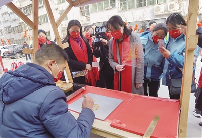 用南瓜粉精心制作的鯉魚造型黃金饅頭栩栩如生、五色彩紙隨著剪刀飛舞變成造型精美的窗花、揮毫潑墨“福”氣到……1月9日,一場傳統(tǒng)味濃郁又充滿新意的新時代“年味大集”亮相海河社區(qū)陽光世紀苑小區(qū)。