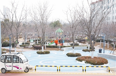 1月23日,市民帶孩子在口袋公園玩耍。記者 張 佩 攝