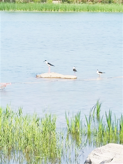 “黑翅長腳鷸對生存環(huán)境要求高,喜好棲息于開闊平原草地中的湖泊、淺水塘和沼澤地帶。它們是水生環(huán)境變化的指示性動物之一,具有重要的生態(tài)價值。”梁新星說。