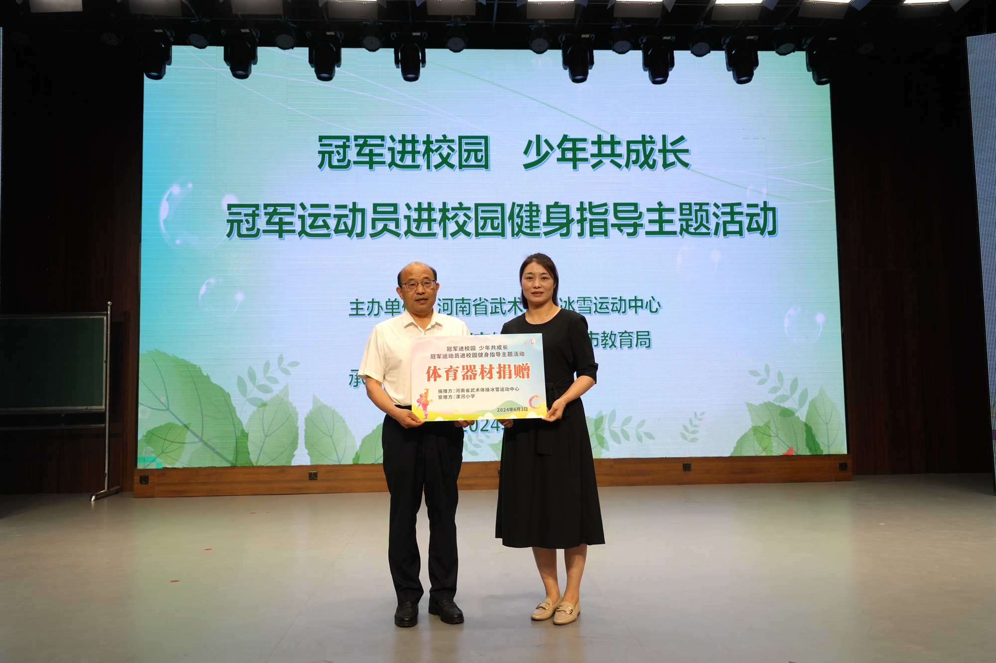 活動現(xiàn)場,河南省武術體操冰雪運動中心及漯河市體育局向學校贈送了籃球,以此表達對學校體育工作的支持和關心。隨后,孔洪星、申國順兩位冠軍在熱烈的掌聲和歡呼聲中走上舞臺,他們深情回顧了自己在武術散打道路上的奮斗歷程,分享了那些充滿挑戰(zhàn)和汗水的故事。這些真實而感人的經(jīng)歷深深觸動了在場的每一位師生,讓大家更加深刻地理解了冠軍榮耀背后的艱辛付出和頑強拼搏的精神。