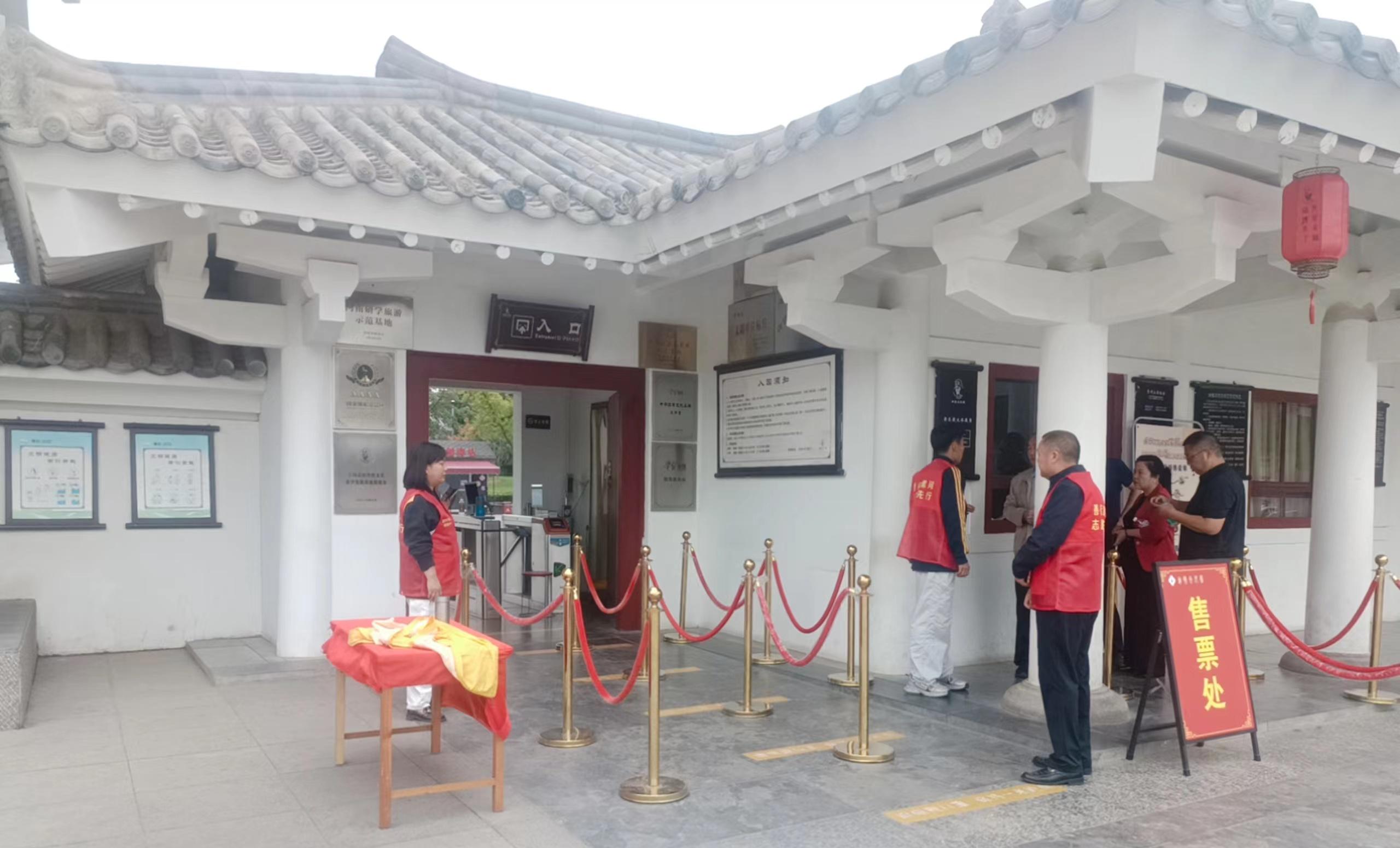 國(guó)慶期間,許慎文化園,志愿者在文明服務(wù)游客。