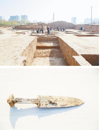 記者了解到,該古墓群在平漯周高速鐵路建設中被發(fā)現(xiàn),目前已發(fā)掘古墓200多座,出土有青銅劍、青銅匕首等戰(zhàn)國時期的青銅器及漢代的陶器、鐵器和玉器等文物千余件。
