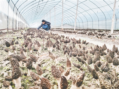 “羊肚菌原產(chǎn)于云貴地區(qū),對溫度和濕度等都有很高的要求。近幾年,北方氣候逐漸變暖,羊肚菌在中原地區(qū)有了規(guī)模種植的條件。”王要華告訴記者,“只要經(jīng)常保持好大棚內(nèi)的溫度,定期通風噴水,就能保持好菌株的長勢。”