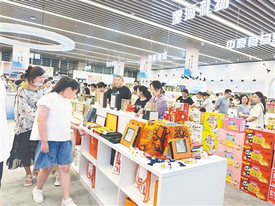 中國(guó)食品名城品牌館內(nèi)更是熱鬧非凡。市民把中原食品實(shí)驗(yàn)室、豫農(nóng)優(yōu)品等專區(qū)圍得水泄不通。館內(nèi)的收銀臺(tái)前排起了長(zhǎng)隊(duì)。
