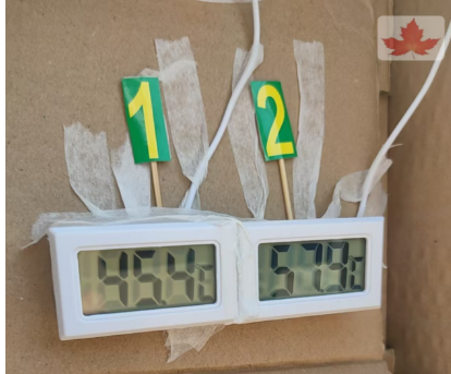 夏浩桐同學(xué)告訴記者:“去年秋天,我們觀賞紅楓葉時,偶然發(fā)現(xiàn)路兩側(cè)的五角楓樹干出現(xiàn)了蛻皮壞死現(xiàn)象。寒假期間,我們又對整條路的五角楓進(jìn)行了全面觀察和統(tǒng)計(jì),發(fā)現(xiàn)壞死率竟然超過了65%。于是,我們就這個現(xiàn)象與學(xué)校張真老師進(jìn)行了討論。張老師非常支持,很快便成立了由她和我們四位學(xué)生組成的‘五角楓實(shí)驗(yàn)小組’。”“我們小組多次實(shí)地調(diào)查、現(xiàn)場測試后發(fā)現(xiàn),在夏季太陽直射下,五角楓樹皮西側(cè)和南側(cè)的溫度差異巨大。比如現(xiàn)在下午3點(diǎn),我們測得南側(cè)(1號線)電子測溫計(jì)顯示45.4℃,而西側(cè)(2號線)測溫計(jì)則顯示高達(dá)57.9℃,兩側(cè)溫差達(dá)到了12.5℃。”夏浩桐繼續(xù)說道,“我們小組經(jīng)過多次測試、記錄數(shù)據(jù),并查閱了大量資料,還借助了‘豆包’等AI工具進(jìn)行分析,最終發(fā)現(xiàn)了一些資料提到了‘日灼病’,即因太陽輻射溫度過高而導(dǎo)致的植物曬傷。我們認(rèn)為,這里的五角楓很可能就是患上了日灼病。”