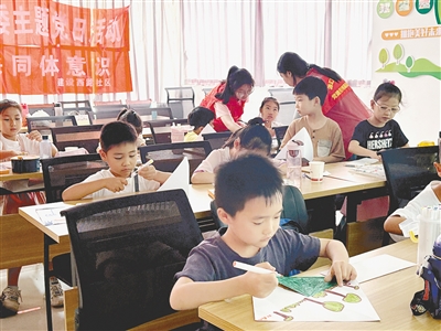 隨后,記者來到建西社區(qū)。大學(xué)生志愿者韓卓穎正給孩子們上美術(shù)課。孩子們拿起水彩筆,充分發(fā)揮想象力,在紙上畫出自己眼中的多彩世界。