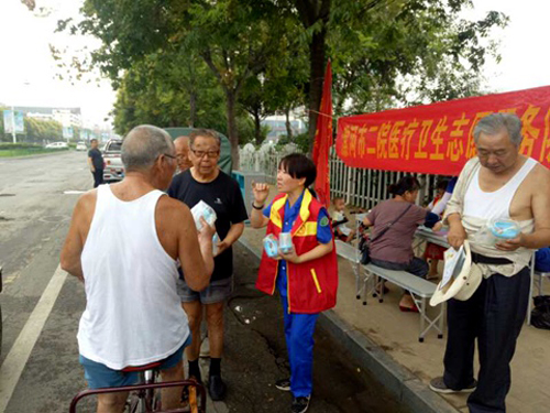 2017年8月25日是全國第一個“殘疾預(yù)防日”,殘疾風(fēng)險伴隨每個人,殘疾預(yù)防與個人健康、家庭幸福、經(jīng)濟(jì)社區(qū)健康發(fā)展息息相關(guān)。市二院組織醫(yī)療志愿者在雙匯廣場進(jìn)行了健康公眾宣傳和義診,發(fā)放健康宣傳手冊200余份,發(fā)放控油壺限鹽勺小禮品100余份,免費(fèi)為市民測量血壓等。