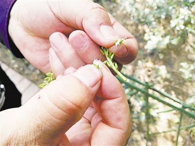 市區(qū)淞江路旁,栽種了不少楊樹和柳樹,楊樹已開始吐穗,剝開青綠色的小穗,里面一團(tuán)團(tuán)白絮清晰可見。再過一星期左右,這些白絮就要飄起來。