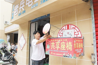 從共享單車到共享電車,再到現(xiàn)在的共享汽車。共享已經(jīng)成為當(dāng)今一個(gè)比較熱門的詞語(yǔ)。近日,在市區(qū)湘江路一小家電維修店門前,有一處免費(fèi)的“共享座椅”吸引了不少人的注意。