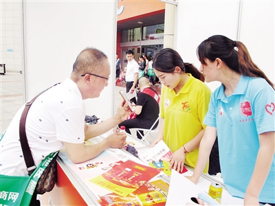 一位外地客商在咨詢志愿者問題。