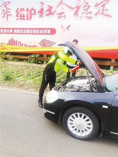 “看到他的車(chē)著了火,我就帶著摩托車(chē)上的滅火器和同事陳凱一起趕了過(guò)去。將火撲滅后,又把電瓶線(xiàn)拆掉,防止危險(xiǎn)發(fā)生。”市交警支隊(duì)秩序管理大隊(duì)騎警中隊(duì)騎警陳彬說(shuō),事發(fā)時(shí),他和同事陳凱正在附近執(zhí)行任務(wù)。