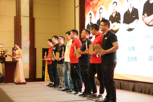 從2006年11月豫南國美第一家門店——國美新天地店在漯河正式開業(yè),發(fā)展到今日,豫南國美已經(jīng)走過了13個年頭,壯大到39家門店,團(tuán)隊(duì)也從幾十人發(fā)展到900多人。13年的歷程,不少人親眼見證了豫南國美一步一個腳印的成長,在慶典活動中,對為豫南國美做出貢獻(xiàn)的資深老員工、在工作崗位長期默默奉獻(xiàn)的員工和一些長期與豫南國美合作的廠家業(yè)務(wù)精英進(jìn)行了表彰。
