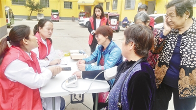 10月9日,在市區(qū)銀鴿大道碧水灣小區(qū),召陵區(qū)東方社區(qū)聯(lián)合社區(qū)衛(wèi)生服務(wù)站為居民義診,普及疾病預(yù)防知識(shí)。