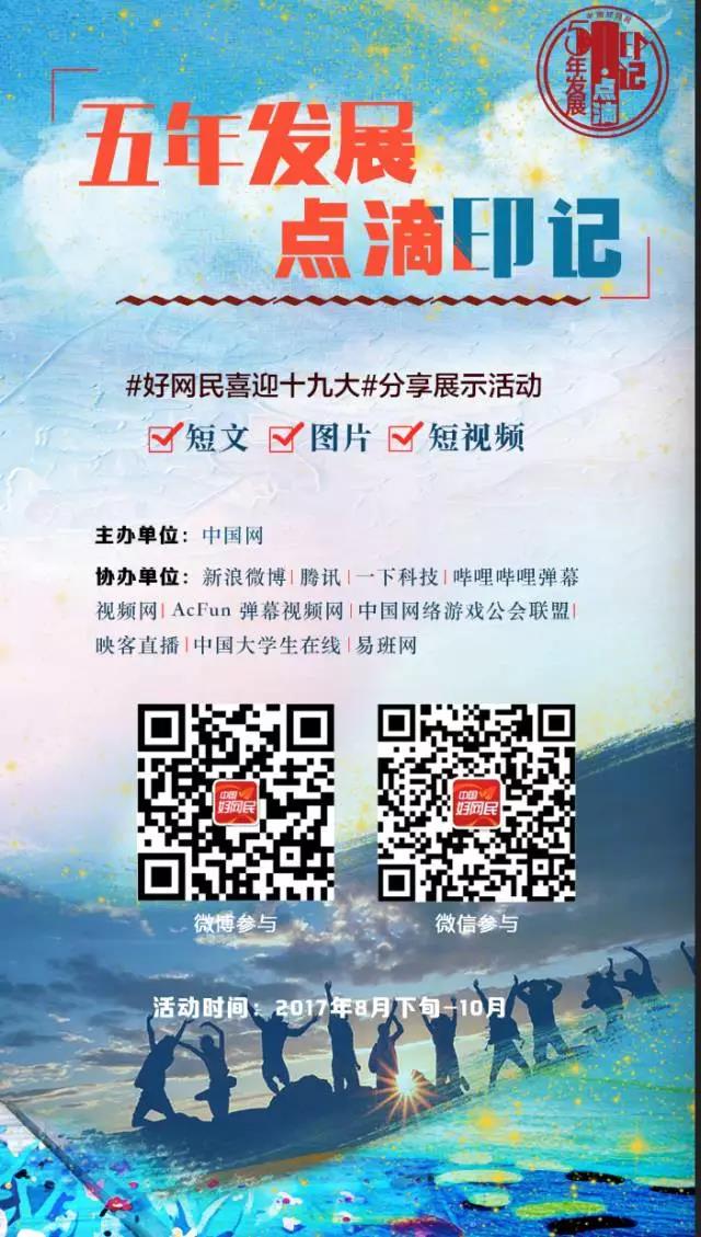 從9月21日起,我們聯(lián)合多家媒體及平臺(tái),應(yīng)廣大網(wǎng)民要求,共同發(fā)起“五年發(fā)展.點(diǎn)滴印記”大型分享展示活動(dòng)。活動(dòng)將持續(xù)至黨的十九大召開(kāi)。