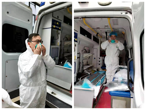 市二院醫(yī)療急救運轉(zhuǎn)隊是2月5號到達武漢,經(jīng)過兩天的緊張集訓(xùn),今天他們就要開始接到首次急救運轉(zhuǎn)任務(wù)。“第一次經(jīng)歷如此重大的戰(zhàn)斗,會緊張、有壓力。”市二院轉(zhuǎn)運醫(yī)療隊的隊員們深知,每一次轉(zhuǎn)送任務(wù)就是離危險更近一步,但沒有一個人打退堂鼓,大家相互鼓勵打氣,克服了許多難以想像的困難。執(zhí)行任務(wù),穿上密不透氣的防護服,一穿就是幾個小時,衣服濕了又干干了又濕。因為怕上廁所,不敢喝水,回來后要經(jīng)過嚴(yán)格的車輛和個人消毒處理,忙活完,大家累得都吃不下飯。