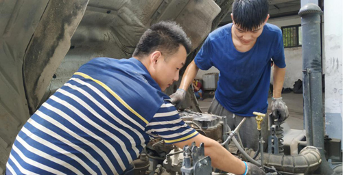 作為修理廠廠長,張長奇說“鉆地溝檢修車是維修工經(jīng)常性的工作,上蒸下烤,猶如鉆進(jìn)烤箱,一天的汗擰下來得有一盆,高溫天氣維修車輛對維修工身體素質(zhì)是一種嚴(yán)重的考驗,主要是怕中暑,有時溫度高達(dá)四十多度,身體素質(zhì)不好的就扛不住了。我們每天的衣服都是機(jī)油和汽油的混合物,也不覺得臟,習(xí)慣了,這活總要有人干”。