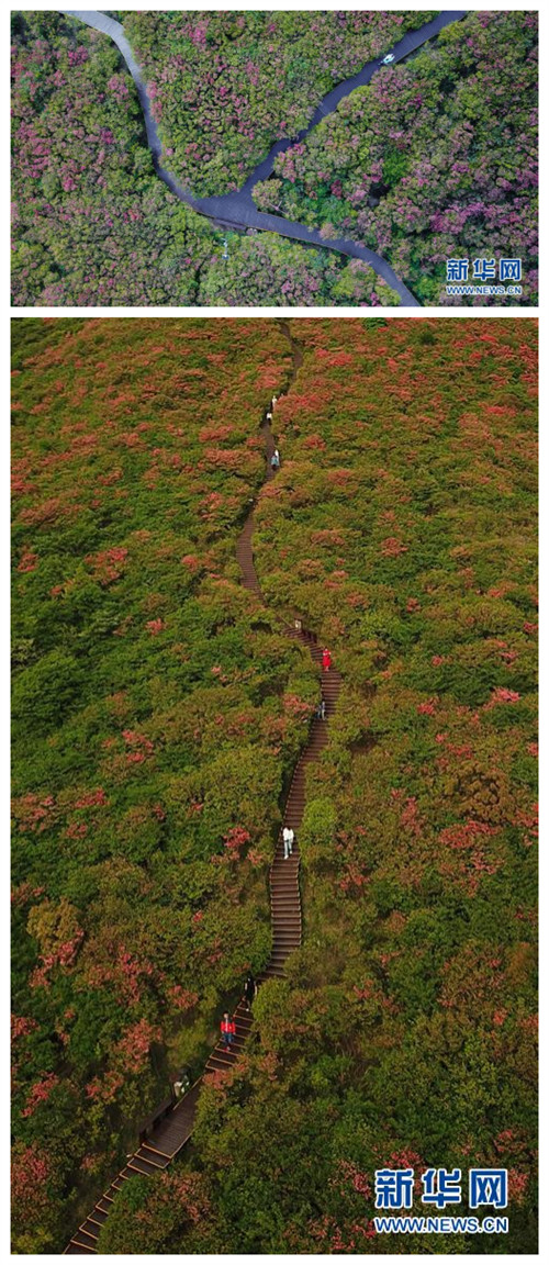 無(wú)人機(jī)航拍漫山遍野杜鵑花開(kāi)景色美