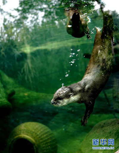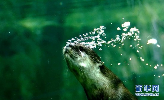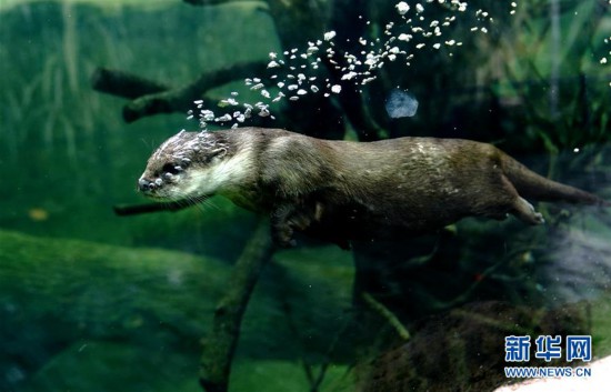 6月10日在上海動物園拍攝的小爪水獺。 新華社記者 張建松 攝